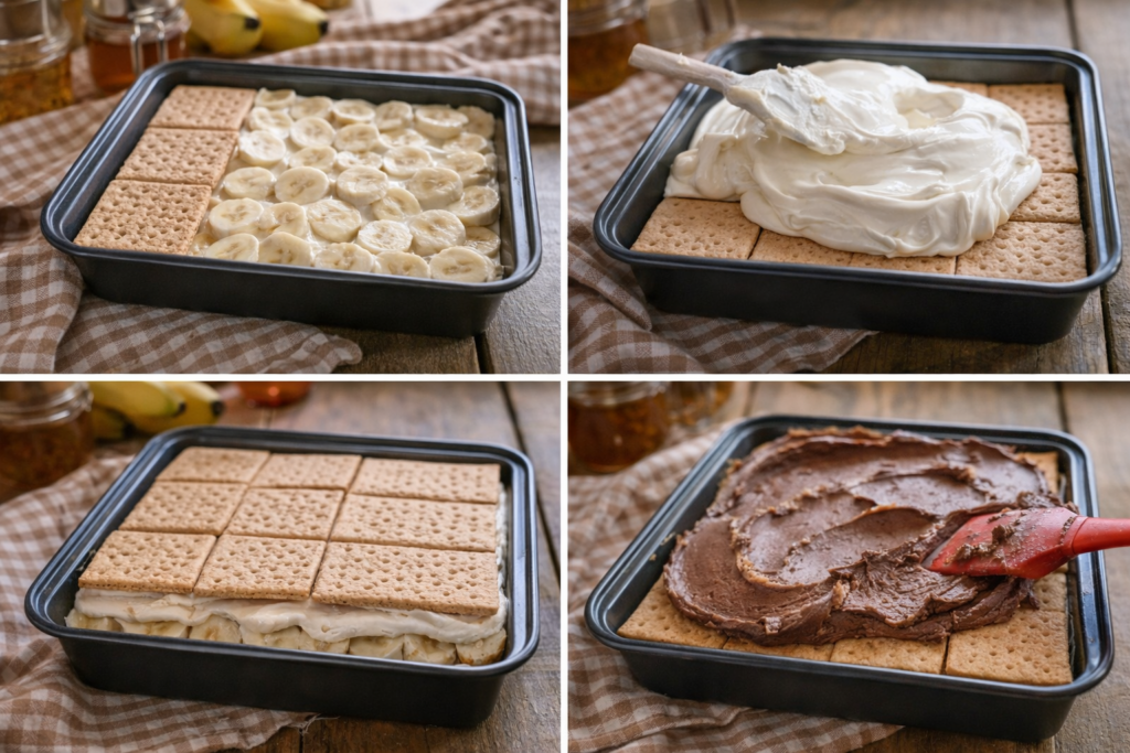 Van az a desszert, ami akkor is mentőöv, ha nincs kedved sütőt melegíteni, mégis szeretnél valami látványosat és igazán krémeset. Ez a sütés nélküli, kekszes-banános szelet pont ilyen: csak egymásra pakolod a rétegeket, a hűtő pedig elvégzi a munka felét.