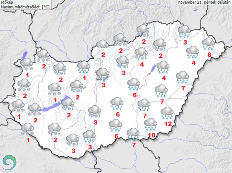 A hőmérséklet délután is alacsonyan marad, általában 0–5 fok között alakulnak a maximumok, így a nap nagy részében kifejezetten hideg, nyirkos, téli jellegű időre számíthatunk.