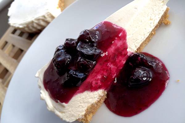 A végén össze kell dolgozni a krémsajtos alapot a tejszínhabbal, és azt ráteríteni a kekszes alapra, mehet 2–3 órára a hűtőbe. A végén már csak az áfonyákat kell ráhelyezni, de dzsem is mehet a sajttortánk tetejére.