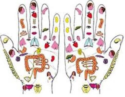 A rövid idő alatt elsajátítható módszer nem csak gyógyításra, de a betegségek megelőzésére is alkalmas. Az alábbi ábrán láthatjuk, hogyan kapcsolódnak egyes szerveink, testrészeink a kézfejünköz. Már csak a pontos helyet kell megkeresnünk, hogy hol található a problémás szervünk, és máris kezdődhet a masszírozás.