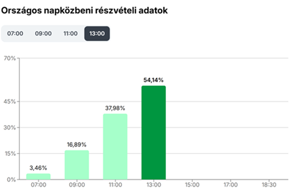 Ez a szám kulcsfontosságú. A választások történetében az ilyen mértékű, már napközben elért részvétel általában arra utal, hogy a nap végére rendkívül magas, akár rekordközeli összesített részvétel alakulhat ki.